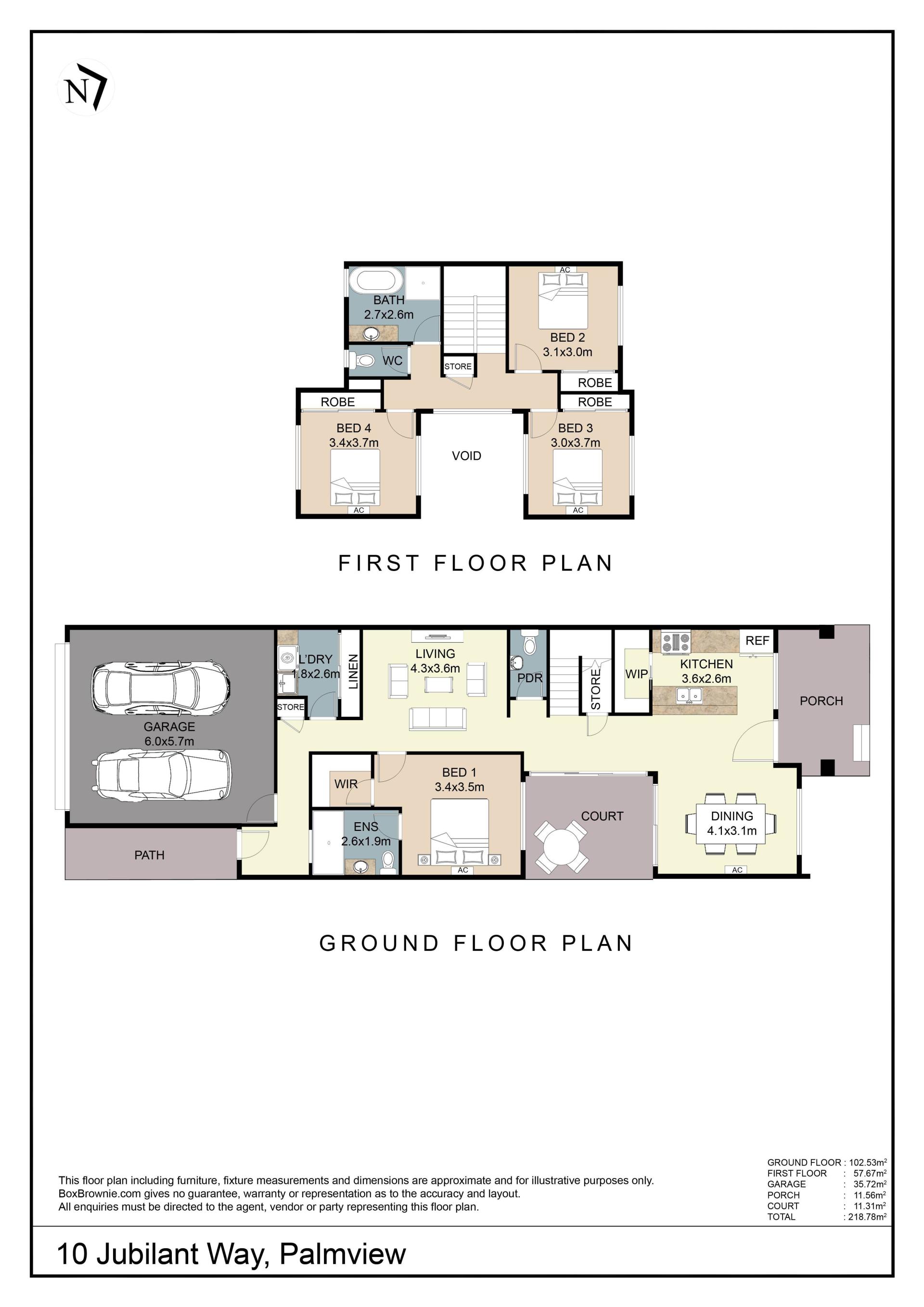 - Four bedrooms all with built in robes, air conditioning, ceiling fans
