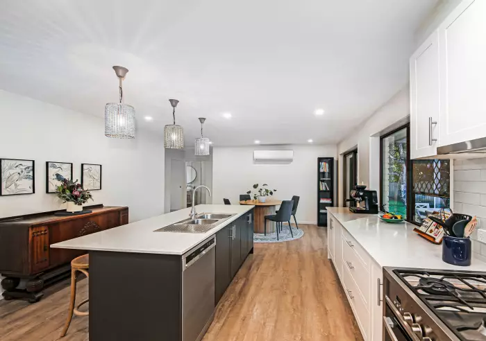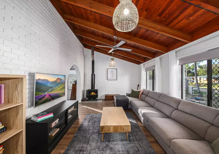 With parking for four cars and a 9x6 powered shed, there's plenty of storage space. Side access accommodates a boat, trailer, or caravan. The property is also equipped with a 6.6kW solar system, promoting energy efficiency.