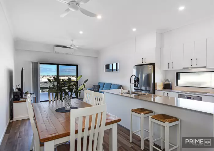 Stylish living abounds upstairs, where you will step into a light-filled, well-designed air-conditioned open plan kitchen, dining and living space that blends comfort and style. The spacious interior flows out onto an oversized covered outdoor entertaining area, with views of the Glass House Mountains, ideal for entertaining guests or relaxing with family.