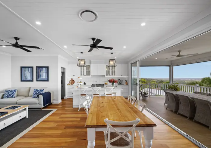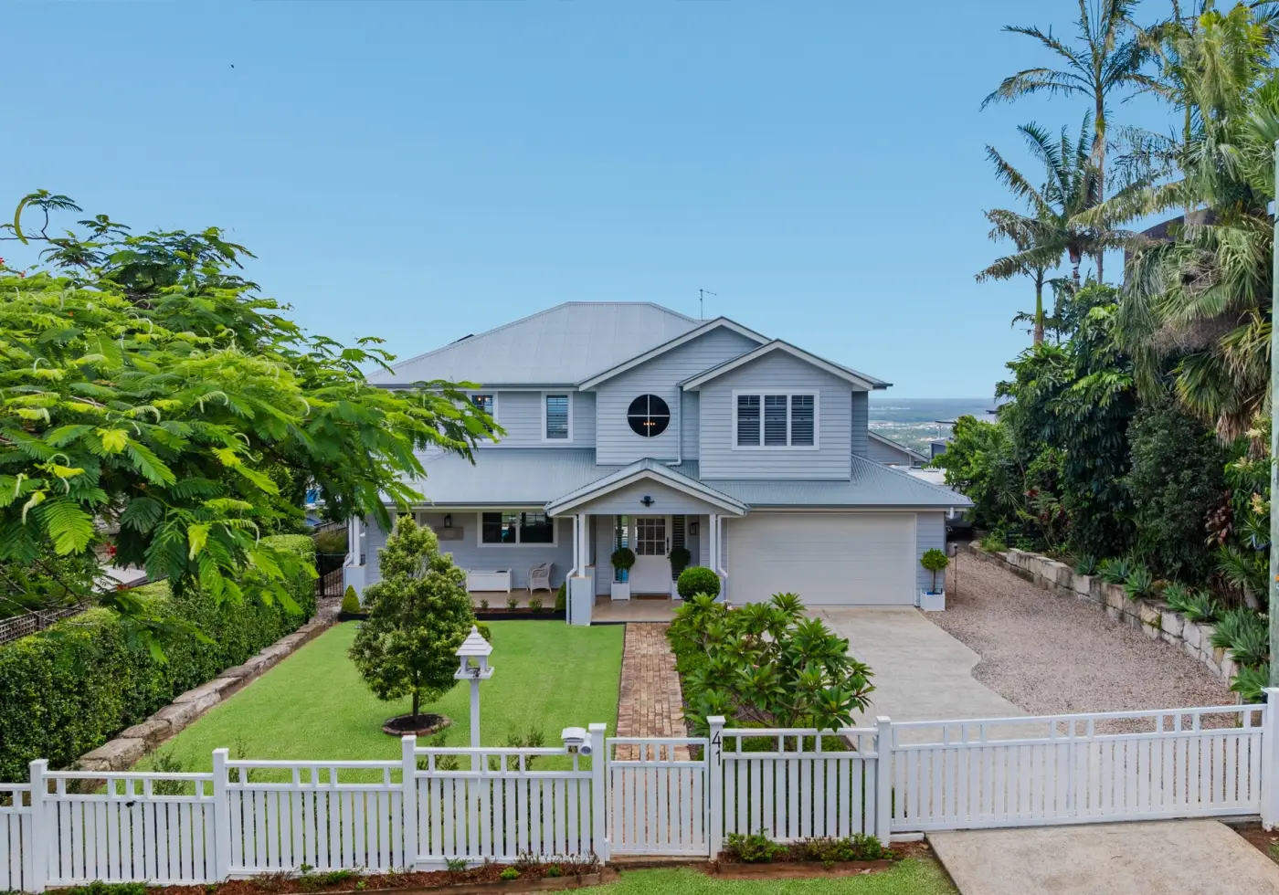 Positioned proudly at the top of Buderim Hill, this stunning Hamptons-inspired residence offers an exceptional blend of timeless style, modern comfort, and breathtaking 180-degree views. Built in 2019 and still under the new builder's warranty, this beautifully presented home sits on a generous 1,206m² block with manicured gardens and an enviable sense of space and privacy.