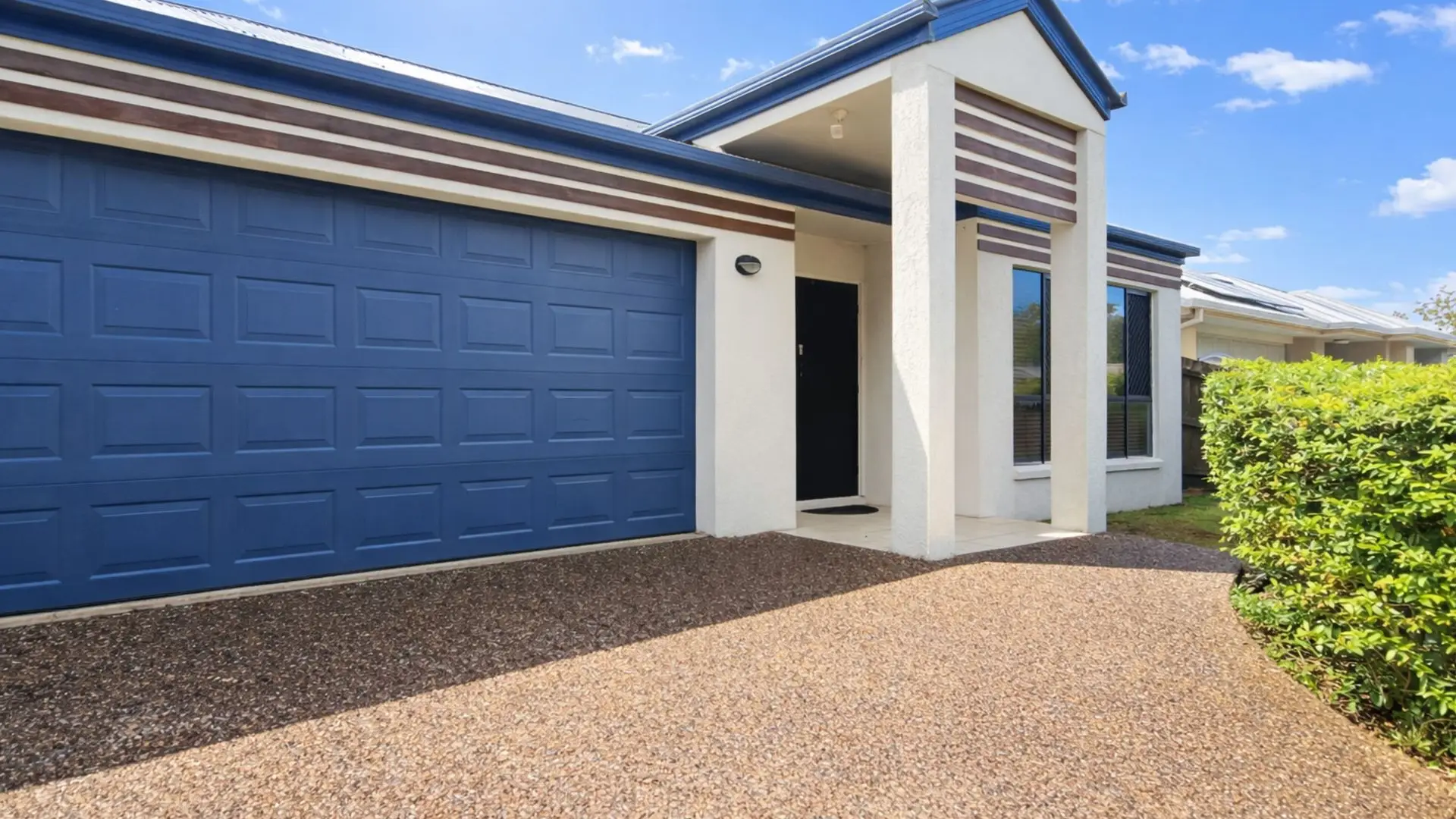 The outdoor area offers a private and low-maintenance setting to relax and enjoy the surroundings. Completing the home is a double garage featuring an additional rear roller door, providing convenient drive-through access to the backyard, ideal for storing trailers or additional vehicles.