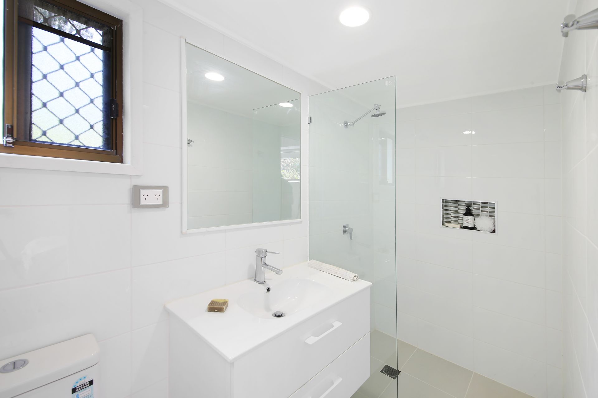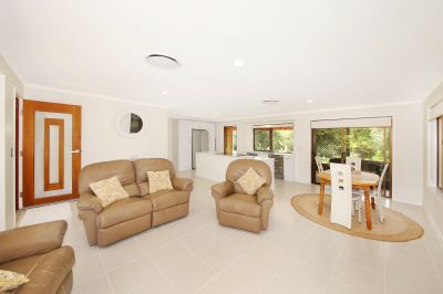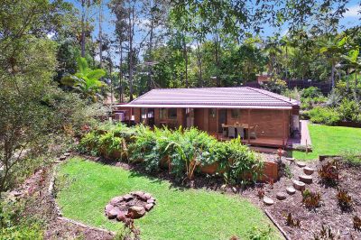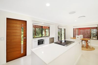Upon driving down your own private lockable driveway you witness the beautifully presented home. It has 4 bedrooms, 2 bathrooms and a wonderful north facing open plan kitchen dining lounge area to relax in comfort. The front spotted gum deck overlooks lovely mature landscaped terraced gardens with the decking continuing wrapping around the whole house.