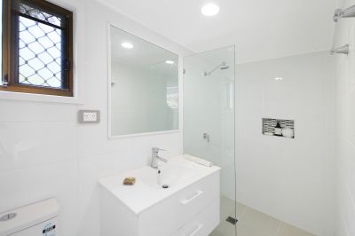 The bedrooms are carpeted with built-in robes and modern shelving. The main bedroom enjoys the luxury of a newly installed ensuite and attractive bay window seat.