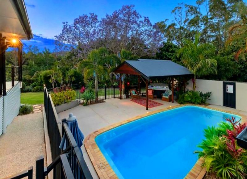 This beautiful property on a 4,516 m2 block, backs onto the mooloolah river and has a new self contained granny flat with its own entrance.